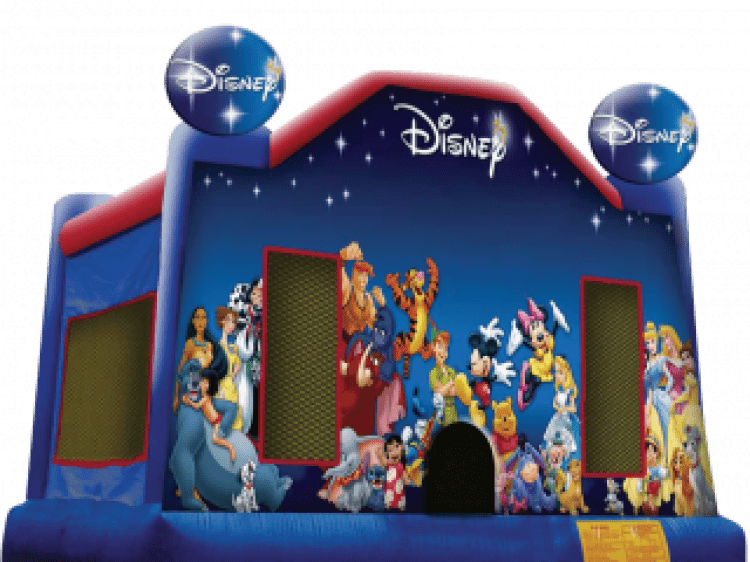 This licensed World of Disney medium jump pulls in the Disney magic to any backyard party or entertainment festival. The entire cast of characters is here, from Dumbo and Tigger to the Princesses and Pinocchio, not to mention Mickey and all of his closest friends. This moonwalk has a character for everyone, as kids get plenty of bouncing fun under the twinkling Disney stars with their favorite member of the world of Disney. Rental Price $ 165.00 for 4 Hours $ 215.00 for 8 Hours Dimensions 14′ 4″ Length 13′ 4″ Width 12′ 8″ Height